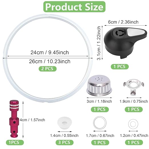 - Instant pot replacement parts: 2 × instant pot sealing ring, 1 × instant pot steam release valve, 1 × float valve, 3 × float valve gasket, 1 × anti-block shield, 1 x anti-blocking shroud bracket, 2 x valve sealing ring.