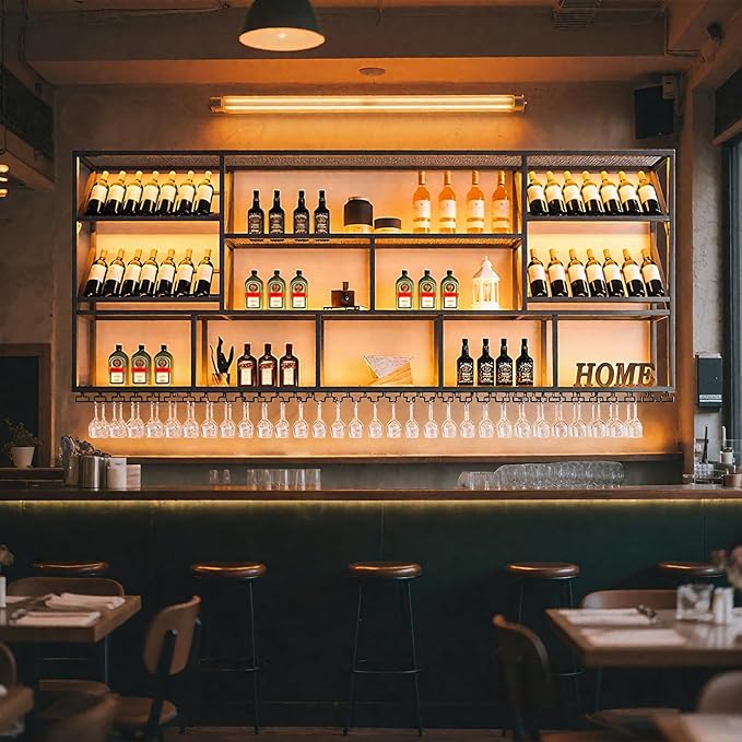 - Smart Space Optimization Design: The wall-mounted, floating installation maximizes wall space without occupying floor space. The top of the rack can be used to display decorative items (plants, books, etc.), and the open structure allows for DIY customization. An optional LED light strip (sold separately) can enhance the display of your wine collection