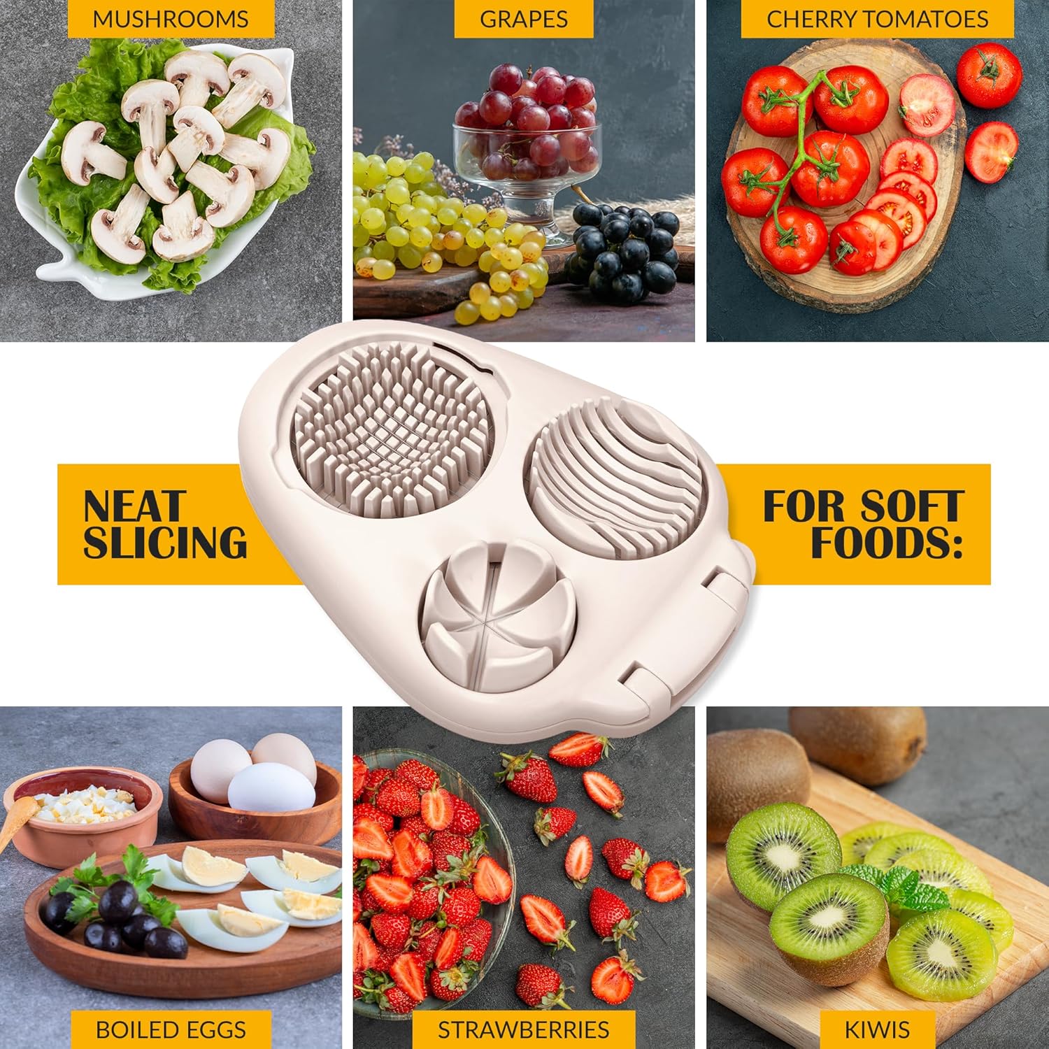CraftyCrocodile Egg Slicer for Hard Boiled Eggs - 3 Slice Modes Egg Cutter, Heavy Duty, Stainless Steel Dicer - Kitchen Chopper Tool for Strawberry, Mushroom, Grape, Cherry Tomato - Light Beige