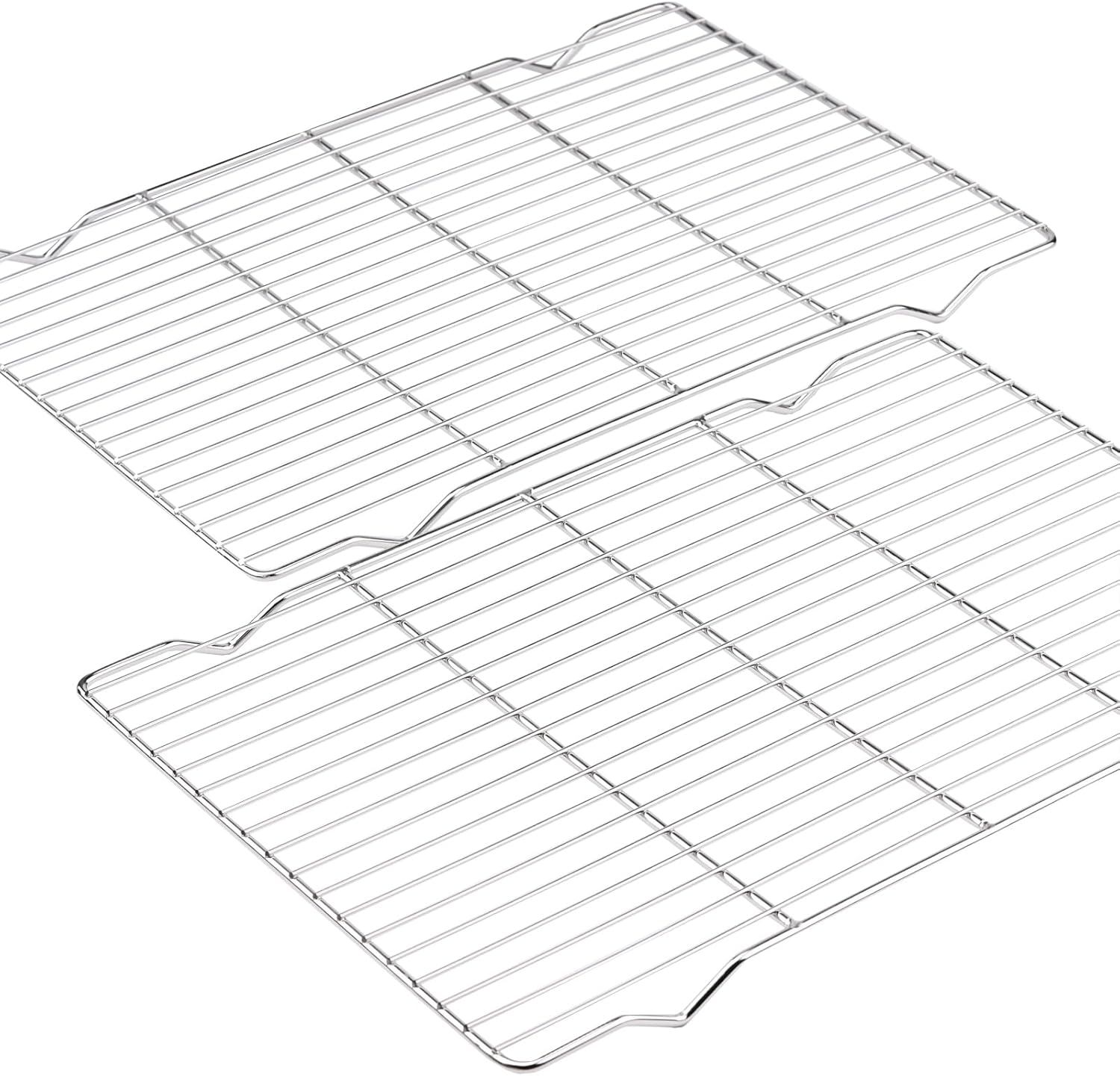 - 5.Even Heat Distribution: The closely spaced wires ensure consistent heat flow for perfectly cooked meals every time. Enjoy evenly baked dishes with no hot spots.Space-saving design works as a half sheet cooling rack for baking and cooking