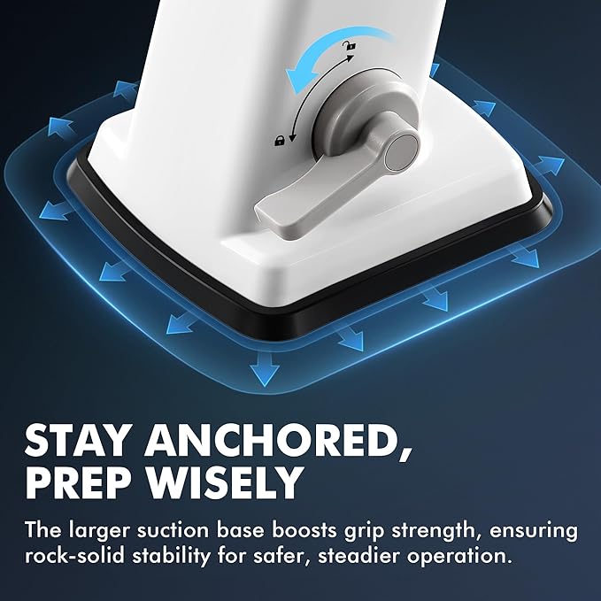 - Safe & Reliable Use : Made from food-grade materials that without BPA, this rotary cheese grater with handle ensures safe food processing. The newly upgraded suction base provides even stronger grip, keeping the grater securely fixed to your countertop for faster and safer operation. Plus, the pusher keeps your hands away from the blades.