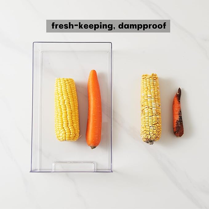 PeJeyiee Clear Stackable Refrigerator Organizers and Storage Drawers - Pull-Out Fridge Bins with Anti-Slip Base & Easy Clean, Plastic Organizers for Kitchen Pantry Cabinet Closet (2XL)
