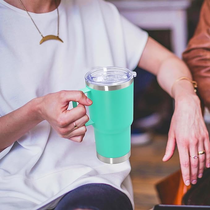 - Stainless Steel Tumblers with Handle: Crafted with thickened 304 (18/8) food-grade stainless steel, 20oz coffee mug features a sweat-proof matte powder-coated exterior and polished interior for sweat-proof, rust-proof, odorless. 360° welded handle ensures secure grip and durability.