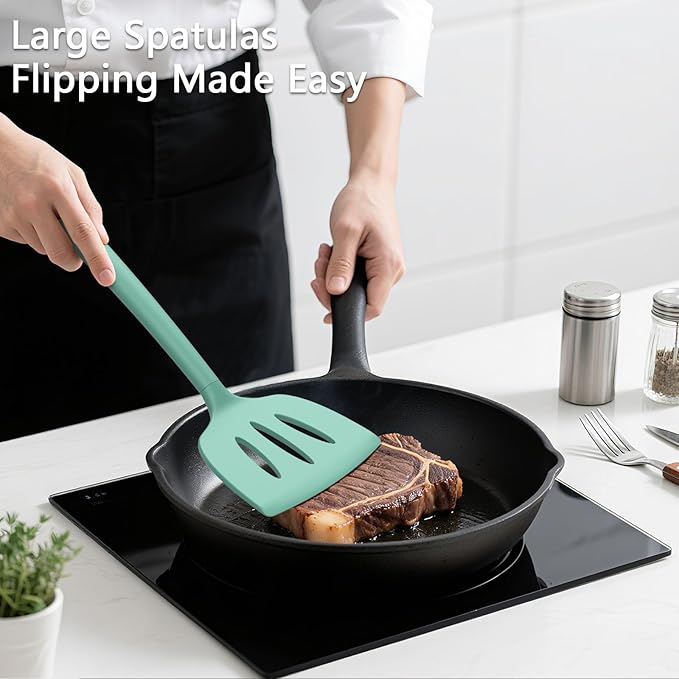 - [Versatile Spatula Set of 3]: This cooking utensils set includes a Large Fish Spatula, Slotted Spatula, and Solid Spatula—ideal for flipping eggs, pancakes, burgers, and frying fish without scratching your kitchenware