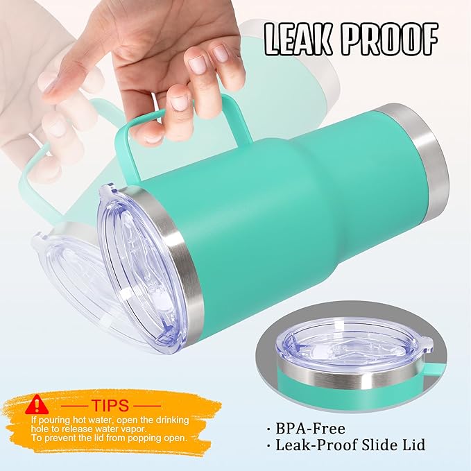- Stainless Steel Tumblers with Handle: Crafted with thickened 304 (18/8) food-grade stainless steel, 20oz coffee mug features a sweat-proof matte powder-coated exterior and polished interior for sweat-proof, rust-proof, odorless. 360° welded handle ensures secure grip and durability.
