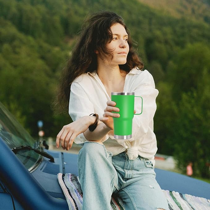 - Stainless Steel Tumblers with Handle: Crafted with thickened 304 (18/8) food-grade stainless steel, 20oz coffee mug features a sweat-proof matte powder-coated exterior and polished interior for sweat-proof, rust-proof, odorless. 360° welded handle ensures secure grip and durability.