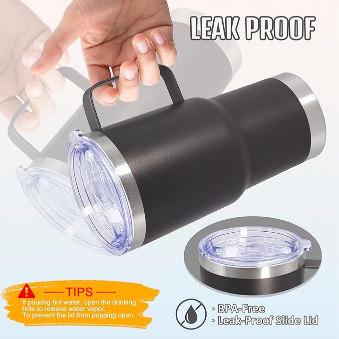 - Stainless Steel Tumblers with Handle: Crafted with thickened 304 (18/8) food-grade stainless steel, 20oz coffee mug features a sweat-proof matte powder-coated exterior and polished interior for sweat-proof, rust-proof, odorless. 360° welded handle ensures secure grip and durability.