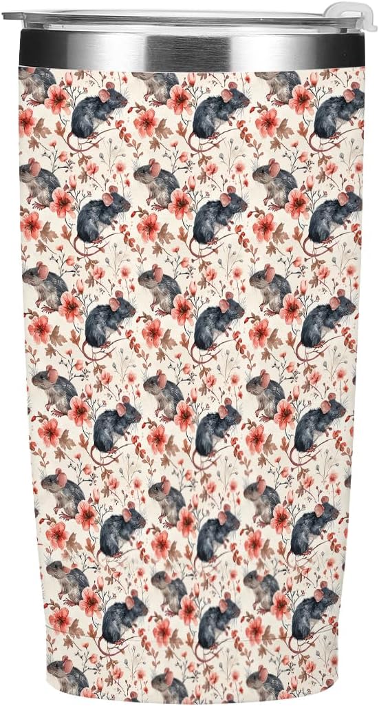 Cute Rat Tumbler, Funny Rat Loves Gifts, 20 oz Stainless Steel Coffee Mug,Travel Cup,Insulated Cup with Lid for Car, Animal Lovers Gifts for Women Boy Girls Sister Friend Christmas Birthday