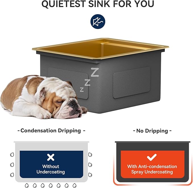 - Superior Strength and Durability: Crafted from 16-gauge stainless steel, our gold bar sink offers exceptional strength and long-lasting performance. Its commercial-grade brushed surface is more functional, resisting and hiding scratches better than a typical satin finish, making it easy to clean and maintain.