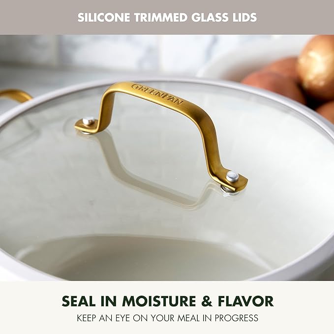 - DURABLE DOMED GLASS LIDS: The tempered glass lids feature a silicone rim to lock in heat and moisture so you can watch all the action on the outside.