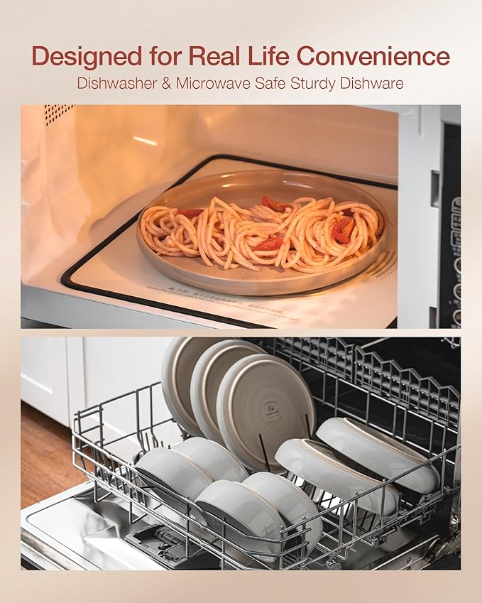 - 【DISHWASHER AND MICROWAVE SAFE】Our dishes have passed microwave and dishwasher safe testing at internationally accredited laboratories. Each plate and bowl is dishwasher safe and microwave safe.