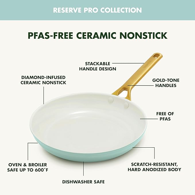 - RESERVE PRO: This collection is where high-performance cooking meets refined design. Featuring GreenPan’s most advanced ceramic nonstick, this collection delivers exceptional durability, stackable convenience, and oven-ready strength.