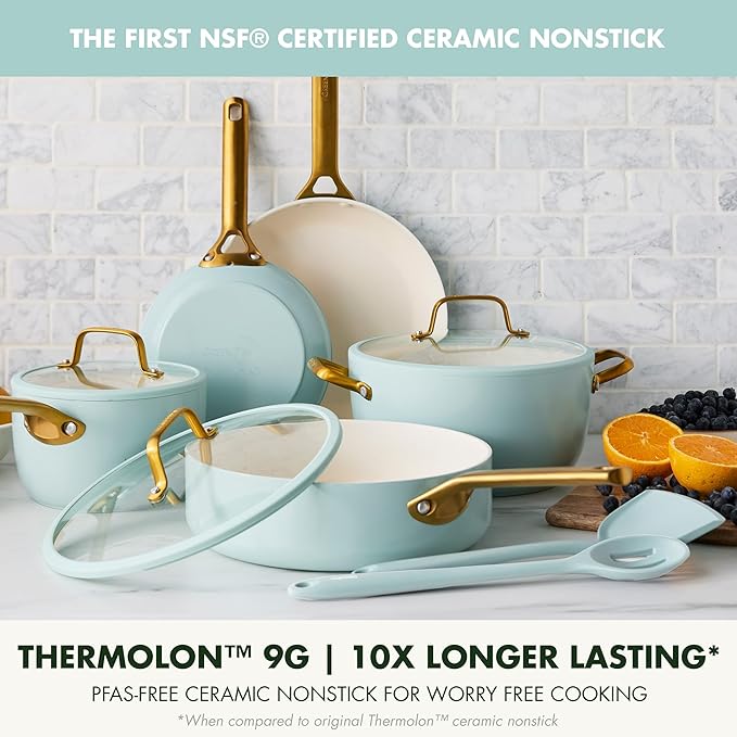 - 10X LONGER LASTING*: Thermolon 9G is the latest evolution in toxin-free cooking. It delivers supercharged performance, remarkable nonstick release, and next-level scratch resistance. The first NSF Certified ceramic nonstick, it's free of PFAS for worry-free cooking.