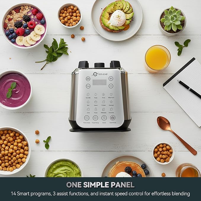 - 【9 Adjustable Speeds & 14 Pre-Programmed Functions for Complete Control】 Featuring 9 adjustable speeds, this blender allows you to achieve custom textures, from coarse to ultra-smooth. Whether you’re grinding coffee beans, making silky nut butters, or pureeing soups, you have complete control over the blend’s consistency. With 14 built-in preset programs, you can create a wide range of recipes—from smoothies to baby food—at the push of a button. Perfect for creating both simple and complex recipes, it’s your all-in-one kitchen companion.