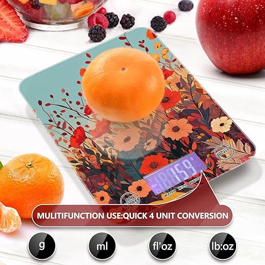 Autumn Poppy Flowers01 Food Scale Kitchen Digital Scale Food Ounces and Grams Dieting Baking Cooking Waterproof Glass Panels LCD Display,4 Units Tare Function