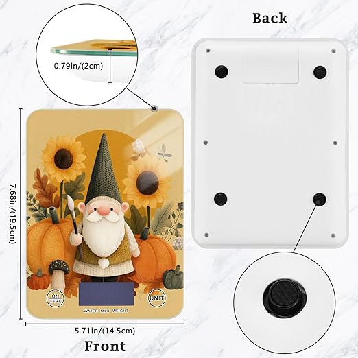 Fall Gnome Pumkin Sunflowers Thanksgiving Food Scale Kitchen Digital Scale Food Ounces and Grams Dieting Baking Cooking Waterproof Glass Panels LCD Display,4 Units Tare Function