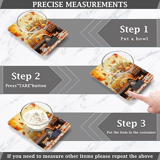 Fall Thanksgiving Pumpkin Truck Food Scale Kitchen Digital Scale Food Ounces and Grams Dieting Baking Cooking Waterproof Glass Panels LCD Display,4 Units Tare Function