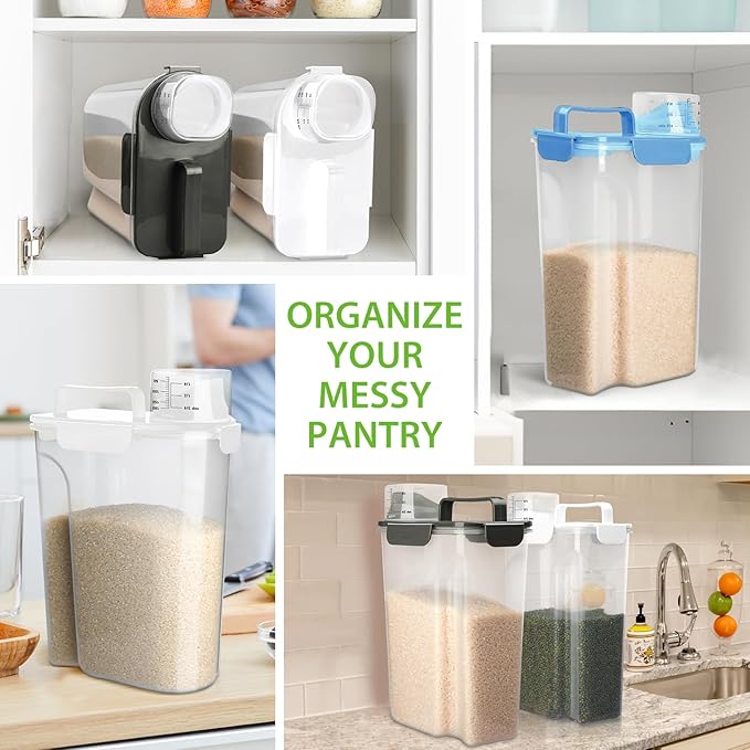 - CLEAR VISIBILITY&ORGANIZE BETTER- Clear container lets you identify contents at a glance. The rice container storage will keep your kitchen pantry neat and organized. And portable handle, easy to move and go out