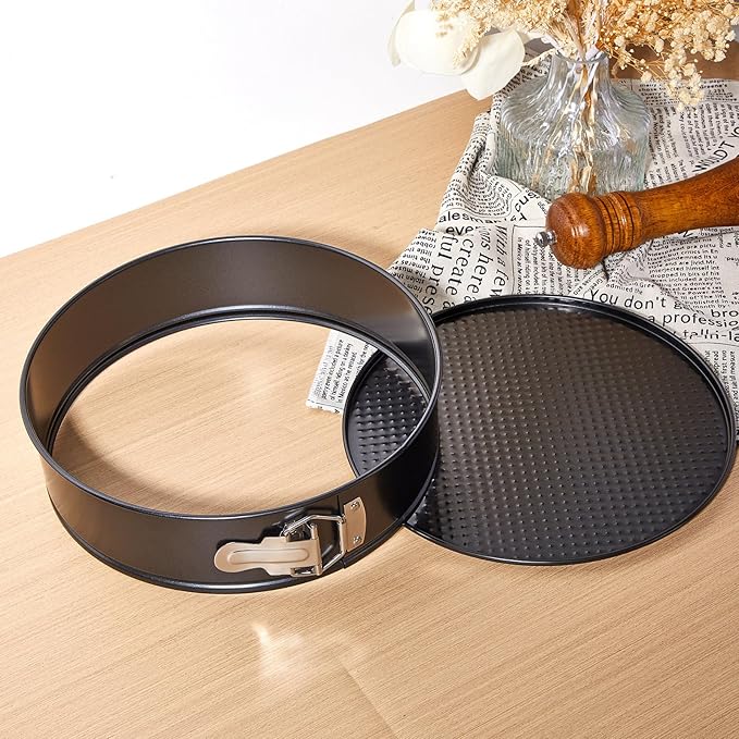 - Stainless Steel Spring Buckles Design: the stainless steel spring buckles of this cake pan round have been upgraded, which are more sturdy and easier to switch, but will not fall off or break, making it easy to pull the cake out nicely