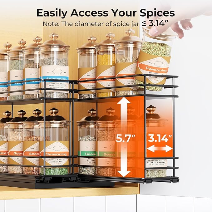 Pull Out Spice Rack Organizer for Cabinet, Slide Out Spice Racks, Easy to Install, 3.0''Wx10.35''Dx8.26''H, 2 Drawers 2 Tiers(Black)