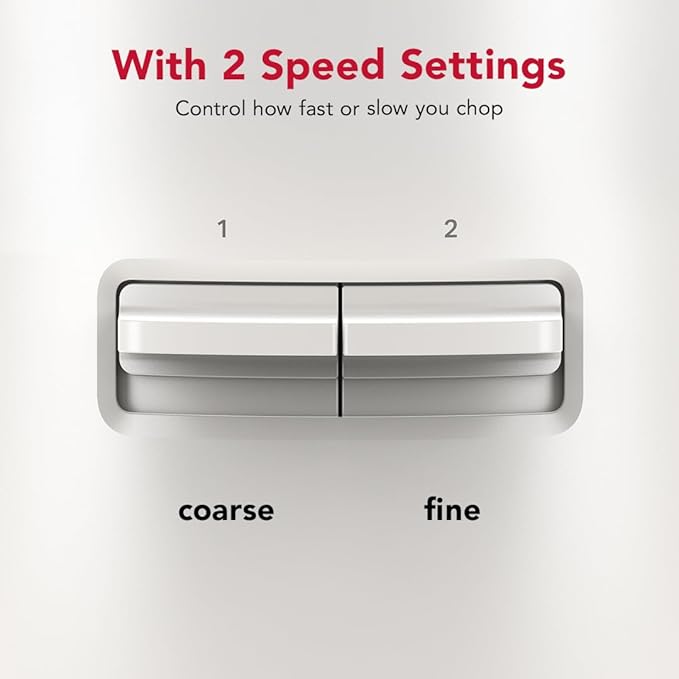 - Save space with the all-in-one storage design that stores blades and discs right in the work bowl. With 2 Speed Settings control how fast or slow you chop, for coarse or fine chopping
