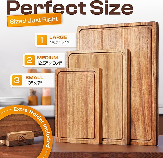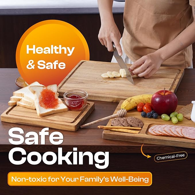 - ✅100% Acacia Wood Craftsmanship – Naturally durable, each board is a beautiful and functional piece of kitchenware.