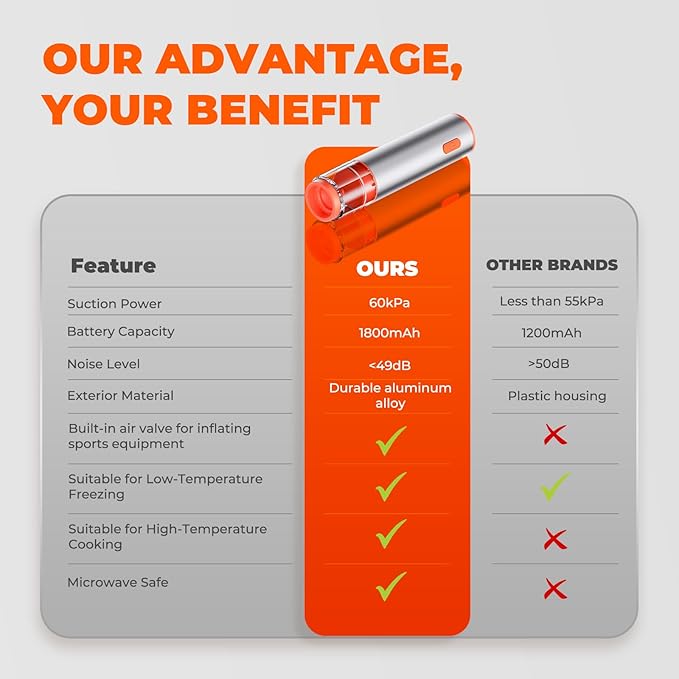 - 【Vacuum Sealer for Everything – Balls & More】From sealing sous vide bags and mason jars to preserving wine or locking freshness in bowls, this vacuum sealer does it all. It also inflates basketballs, soccer balls, and swim rings, making it a must-have for kitchens, travel, sports, and poolside fun