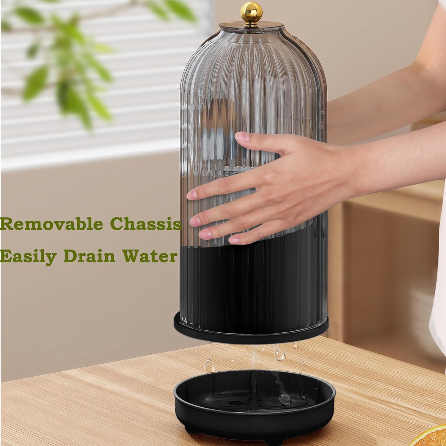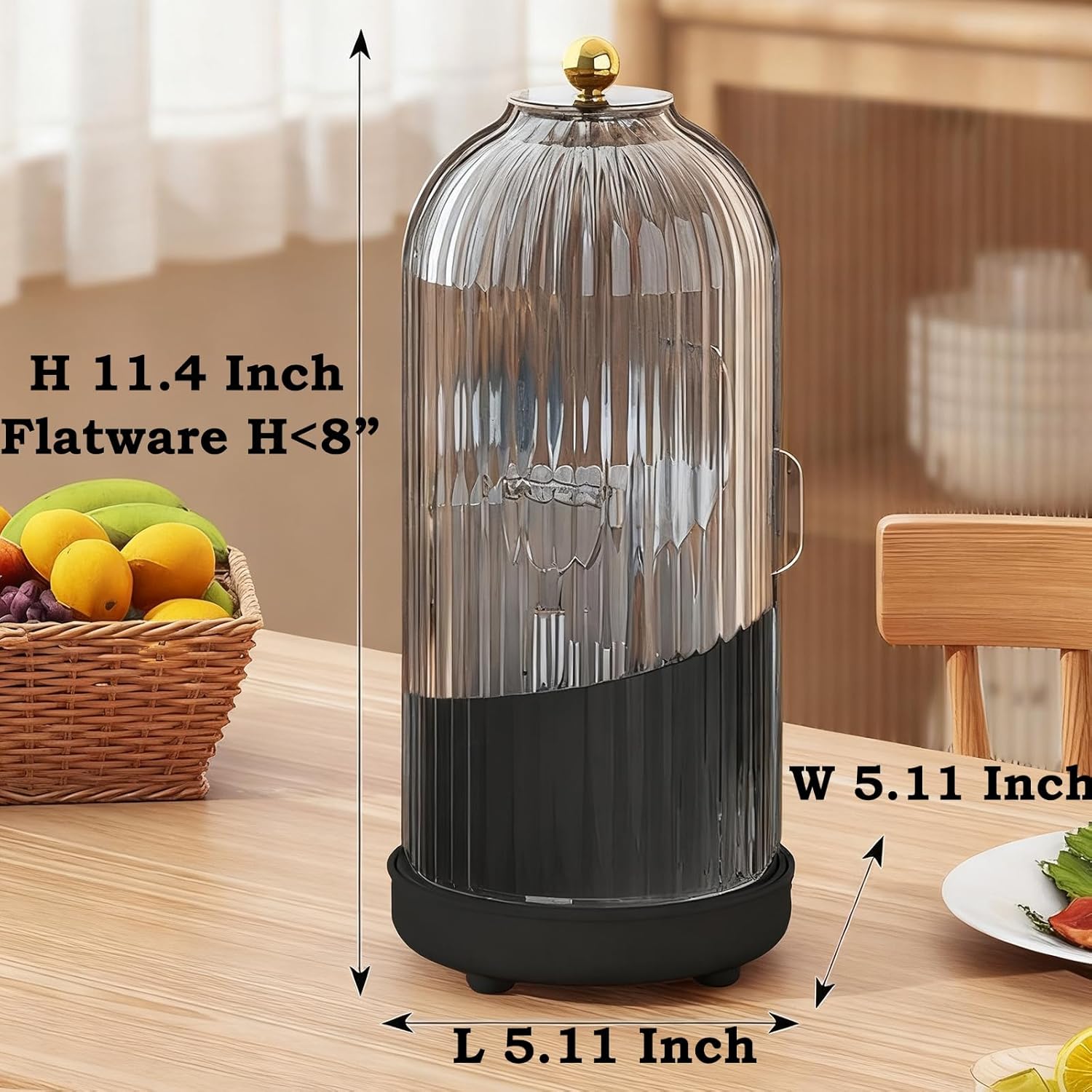 JEESA Utensil Holder with Lid, 360° Rotating Flatware Organizer for Cutlery Spoon Fork(H Less 8"), Silverware Caddy Organizer Drainage Dustproof Flatware Holder Kitchen Countertop Storage, Black