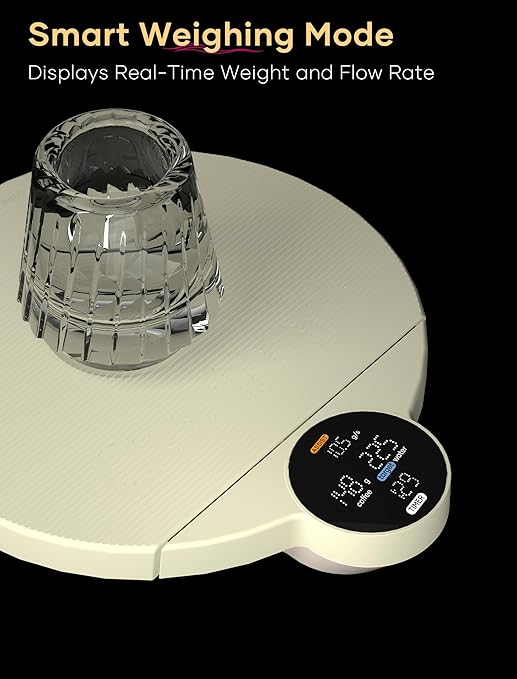- 3 Intelligent Brewing Modes – Master your pour-over technique with three dedicated modes: Brewing Assist, Weighing, and Competition. Whether you’re a beginner or a barista, these modes guide you through flow rate, timing, and ratio to elevate your coffee brewing skills.