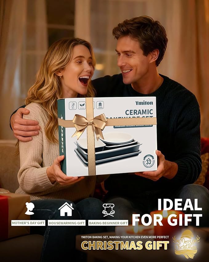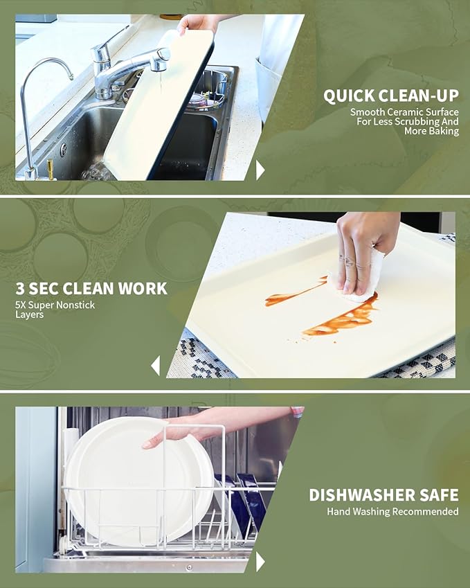 - 33 PCS COMPLETE CERAMIC BAKEWARE SETS: Includes essential bakeware for all baking needs: cookie sheets, round cake pans, loaf pan, muffin pans (12 & 6 cup), and roasting pan- perfect for cakes, cookies, muffins, roasting, and sheet pan dinners, 24 cupcake liners for baking, ideal for multi-tasking in the kitchen
