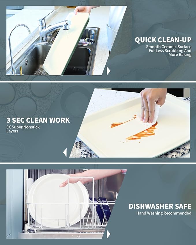 - BUILT TO LAST & OVEN SAFE: Made of heavy-duty 6mm Aluminized Steel Body, Warp Resistance, withstands temperatures up to 550°F(280°C) for versatile use in standard/convection ovens, plus fridge/freezer safe, Dishwasher-safe, yet hand washing is recommended for lasting durability