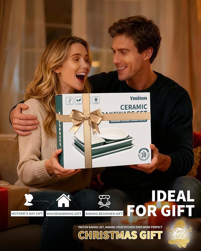 - 30 PCS COMPLETE CERAMIC BAKEWARE SETS: Includes essential bakeware for all baking needs, cookie sheets, round cake pans, loaf pan, muffin pans, and roasting pan - perfect for cakes, cookies, muffins, roasting, and sheet pan dinners, 24 cupcake liners for baking, ideal for multi-tasking in the kitchen