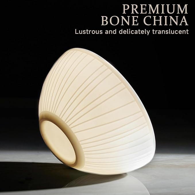 - Premium Bone China: Lightweight, Durable & Luxurious. Crafted from high-quality bone china, it combines a lightweight feel with strong texture. It has a translucent glow, resists chips, and lasts long. Lighter than traditional porcelain, suitable for daily meals or high-end gatherings.