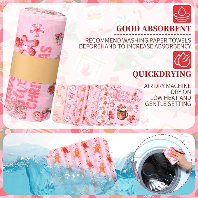 36 Pack Reusable Cleaning Cloths Washable Cotton Kitchen Dish Towels for Home Christmas Party Supplies Bulk, 9.84x11.81in (Pink Gingerbread)
