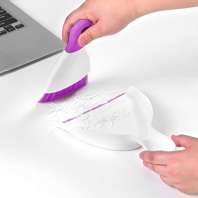 NACENA Mini Dustpan and Brush Set, Small Broom and Dustpan Set Dust Pan and Mini Hand Broom Dustpan and Broom Combo Compact for Home Table Keyboards Sofa Kitchen Pets, Purple