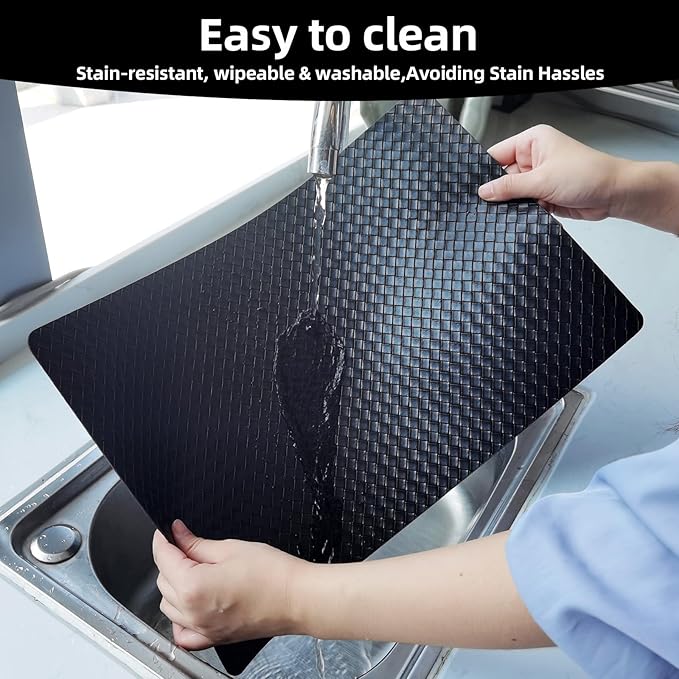 - 【Easy Care - 100% Waterproof Faux Leather Placemat】These leather placemats are washable and won’t fade. Simply wipe with a damp cloth or rinse with water, then dry or air-dry (note: do not machine wash or microwave). They can be rolled up or stored flat to save space, protecting and beautifying your kitchen or dining area at all times.