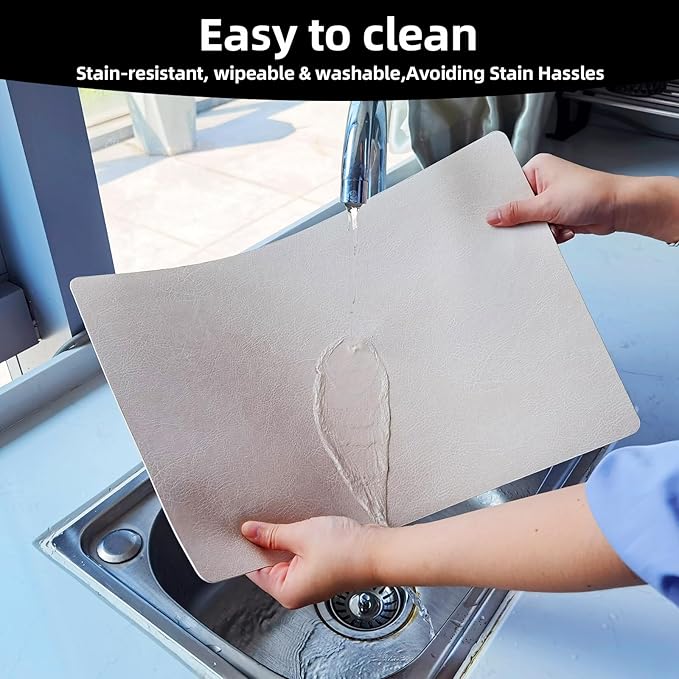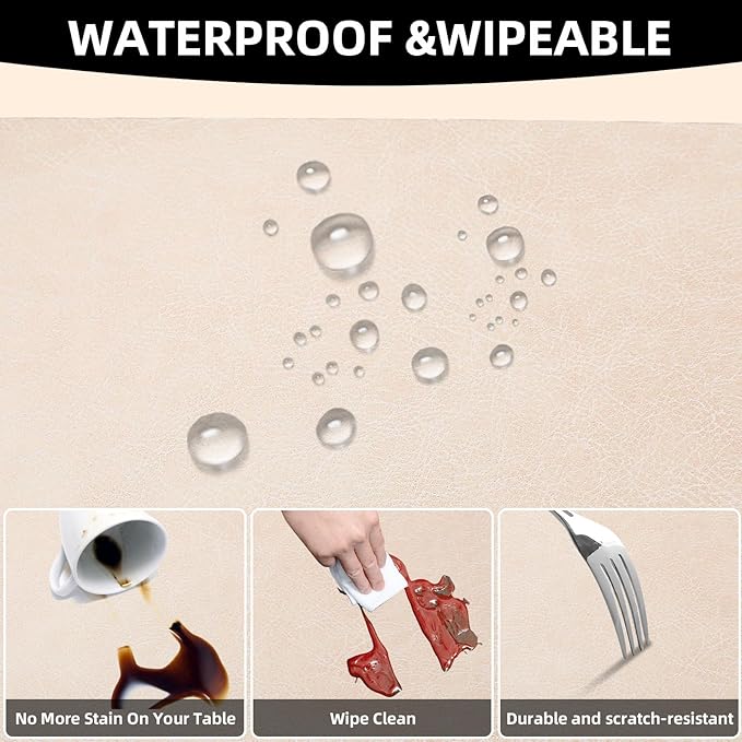 - 【Easy Care - 100% Waterproof Faux Leather Placemat】These leather placemats are washable and won’t fade. Simply wipe with a damp cloth or rinse with water, then dry or air-dry (note: do not machine wash or microwave). They can be rolled up or stored flat to save space, protecting and beautifying your kitchen or dining area at all times.