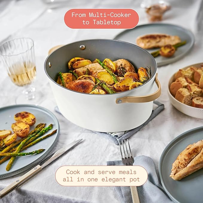 Beautiful 10-in-1, 6-Qt Electric Multi-Cooker | Programmable Touch Display | 7 Presets up to 400 °F | Sear Slow-Cook Steam Rice Warm | Oven-Safe Pot & Lid (White)