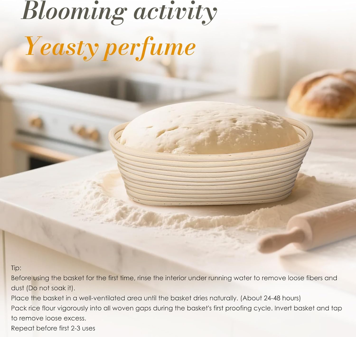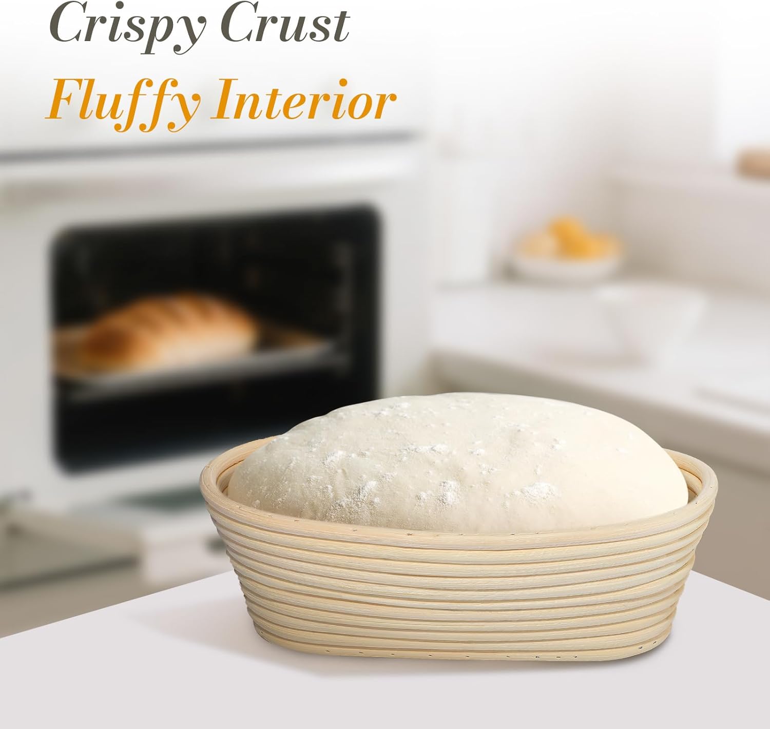- Material: 100% Natural Indonesian Rattan — lightweight and air-permeable for optimal dough rising.The sourdough starter kit includes 2pcs 10 inch oval banneton bread proofing basket with linen liner.