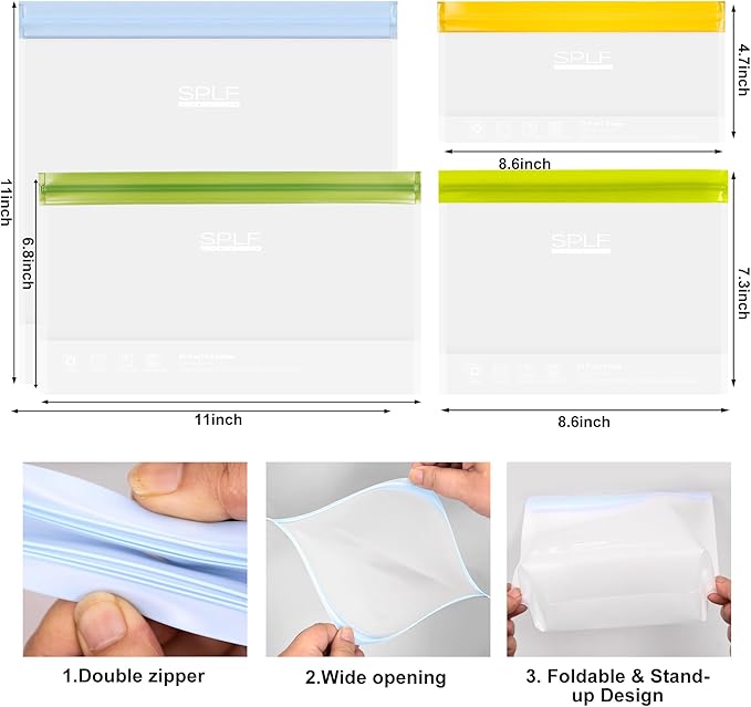 - Reusable & Durable: The reusable food bags silicone are designed with the environment in mind. Extra thick and resistant material makes them durable, reusable and washable. One SPLF reusable bag can replace 300+ disposable plastic bags, perfect solution for plastic bags waste reduction and eco-friendly.