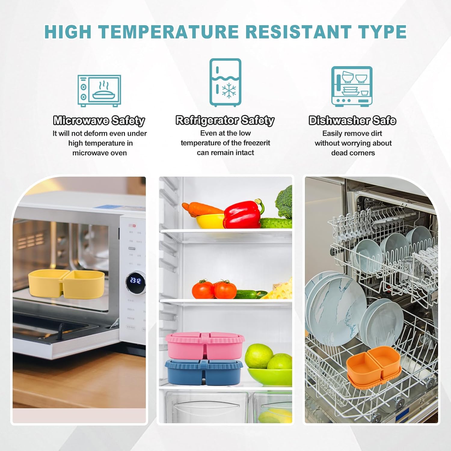 - SAFE MATERIALS: Made from BPA-free silicone with matching silicone lids, these containers are both microwave and dishwasher safe for convenient use