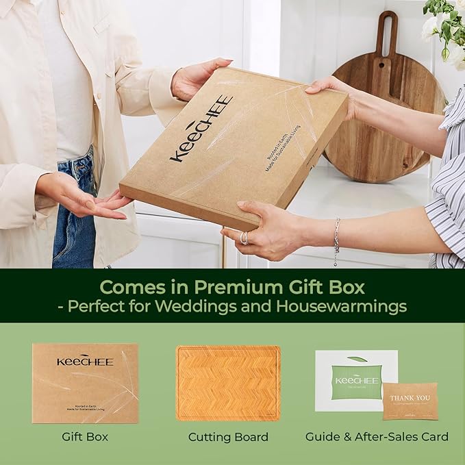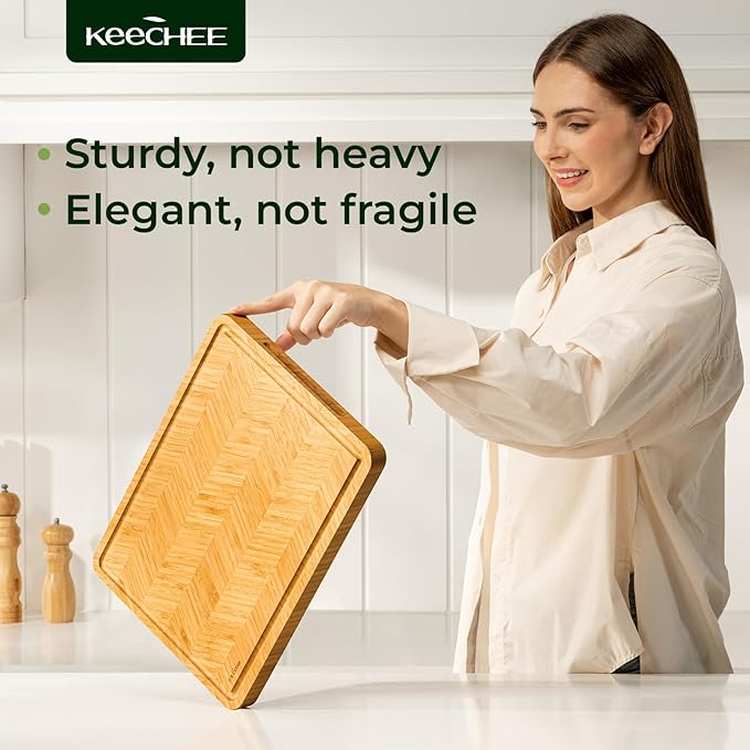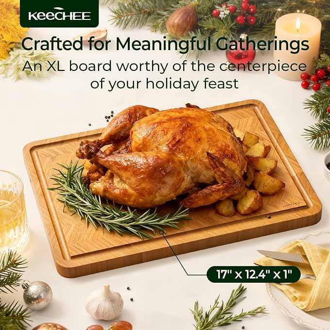 - PERFECT SIZE, THOUGHTFULLY REFINED: The Keechee Atelier Collection XL board measures 17”×12.4”, providing ample space for carving roasts, prepping family-sized meals, or handling large produce. This board is 1” thick, offering greater stability and durability without unnecessary bulk.