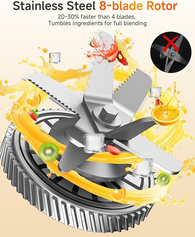 - â¨[Total Blending Technolog]Our blender is equipped with a precise 8-blade stainless steel blade that pulls ingredients down for complete blending. Even hard foods can be easily broken down, maximizing the release of nutrients and flavor, allowing you to achieve better results when making soups, sauces and juices. If you want to make solid food for your baby, this blender's powerful blade can thoroughly combine all the ingredients and blend them into a warm and smooth paste and is easy to digest, surpassing many blenders on the market.