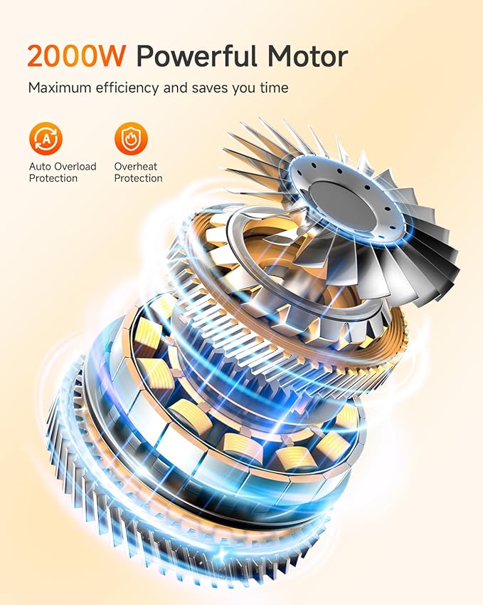 - â¨[Professional-Grade Power] The Airpher blender has a powerful 2000W motor that can easily crush ice, freeze fruits, vegetables and nuts. This smoothie blender has a powerful power of 35,000 rpm, making the drinks taste even and say goodbye to graininess, easily improving the quality of family meals. When you wake up in the morning, throw the food directly into the blender. After a few seconds, you will get a cup of smooth and delicate drink that will instantly wake up your sleepy body.
