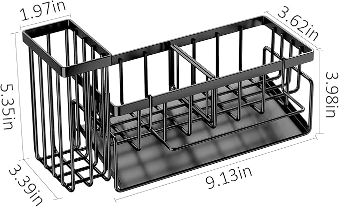 - 【Space-Saving Kitchen Counter Organizer for Small Sinks – Fits 8” Narrow Spaces!】Compact 8.27x3.74-inch footprint fits RVs, apartment kitchens, and cluttered countertops. Vertical storage design holds 1 large dish soap bottle, 2 sponges, and a scrub brush without blocking faucet access – ideal as a rental-friendly sink caddy or under-cabinet storage solution