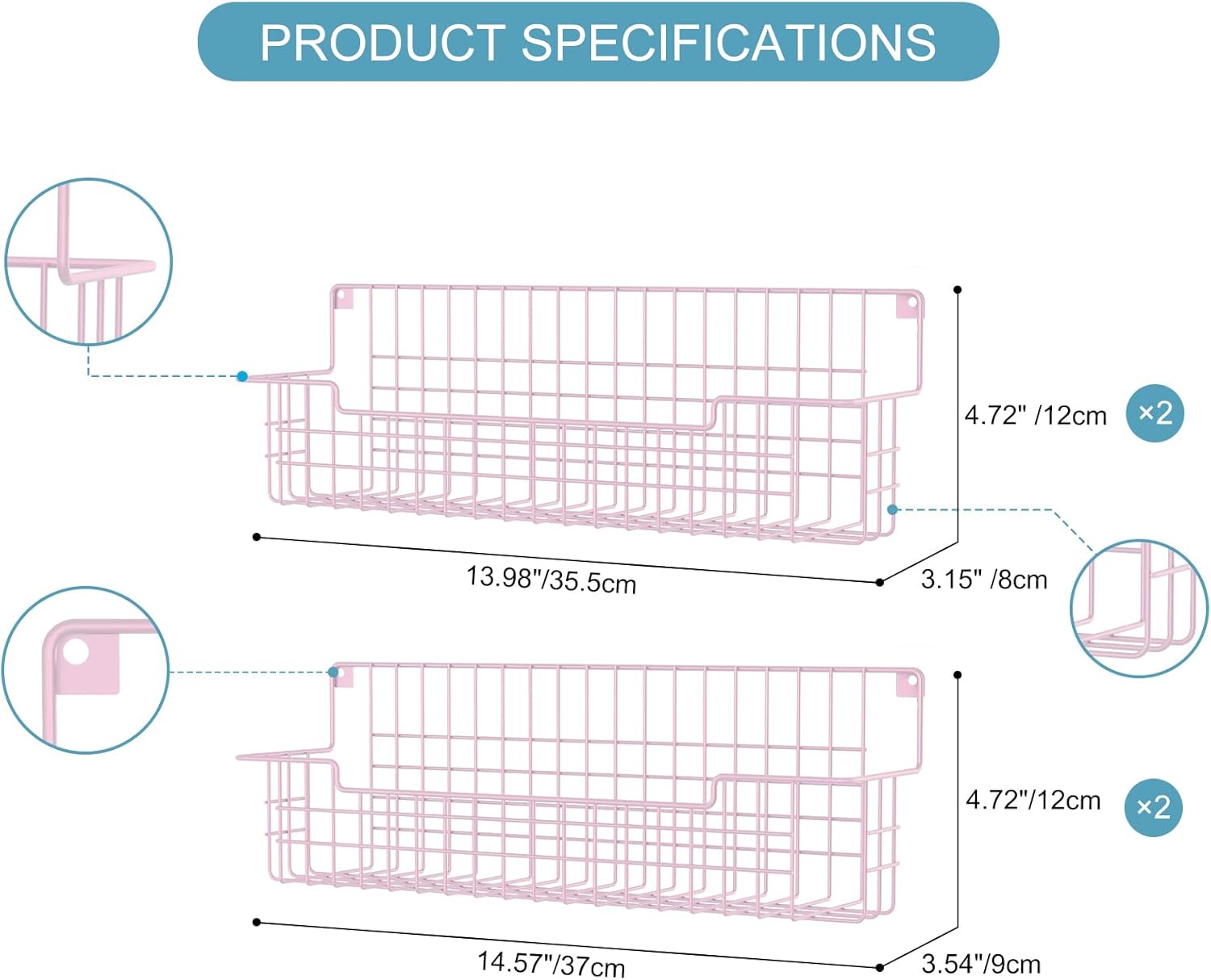 Spice Rack, 4-Pack Seasoning Organizer Wall Mounted for Kitchen Storage Organization, Metal Spice Holder Shelf for Cabinet, Pantry, Pink