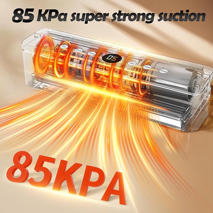 - 【Powerful 85KPa Suction - Stronger Than the Rest】: PULZO Press-Free Flip Lid Vacuum Sealer boasts Powerful 85kpa suction and 115w strong power, achieving a rapid vacuum speed of 12 liters/minute. Upgraded vacuum silicone gasket offers long-lasting use without replacement, enhancing the vacuum effect and greatly extending the machine's lifespan.