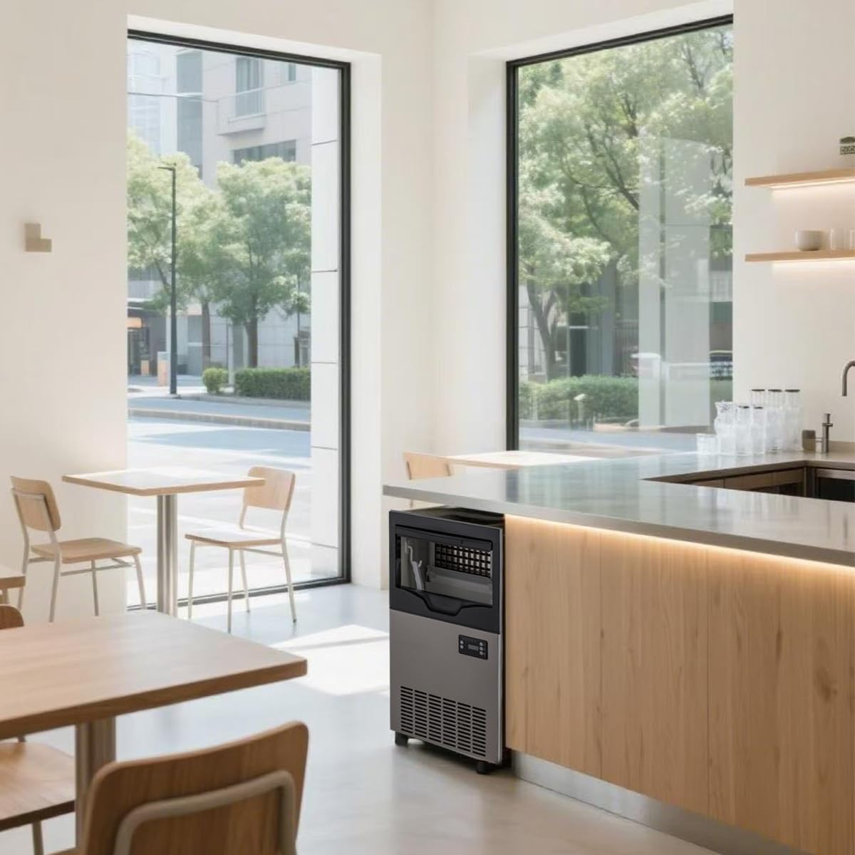 - Premium Design: Constructed from durable stainless steel, significantly enhancing its durability, sturdiness, and lifespan. The freestanding ice maker is easy to install, with dimensions of 15.15 x 15.74 x 28.34 inches and a weight of 48.5 pounds. It is equipped with four adjustable feet to prevent the ice maker from coming into contact with damp surfaces