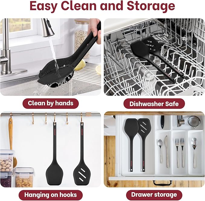 - Dishwasher Safe & Space-Saving Storage: The cooking spatulas are easy to clean, just clean by hand or dishwasher. Each spatula features a hanging hole for hooks or put into cabinet storage, keep your kitchen always organized