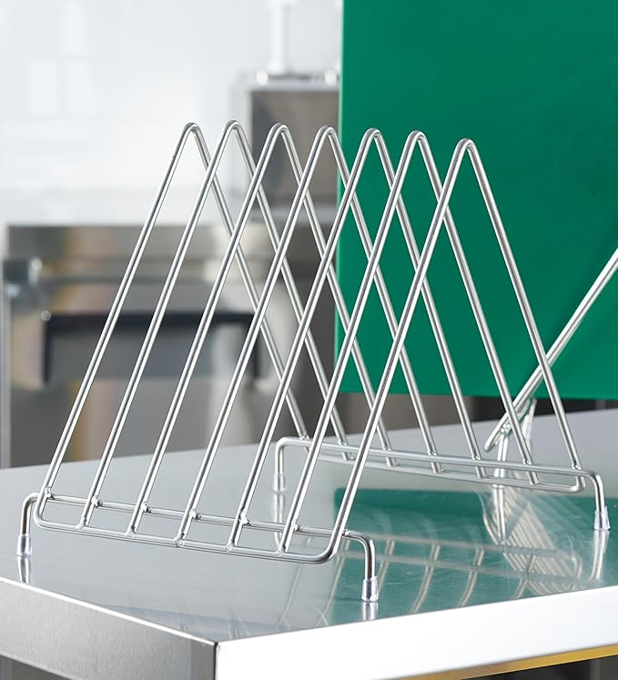 - EASY CLEANING & ORGANIZED STORAGE - Dishwasher safe for convenient cleanup in commercial dish machines. The included stainless steel rack keeps all six boards organized and upright, with non-slip feet to stay secure on prep counters. Perfect for restaurants, hotels, and catering services seeking reliable, professional-grade tools.